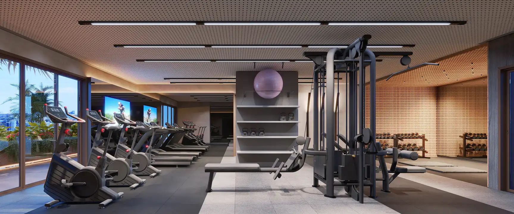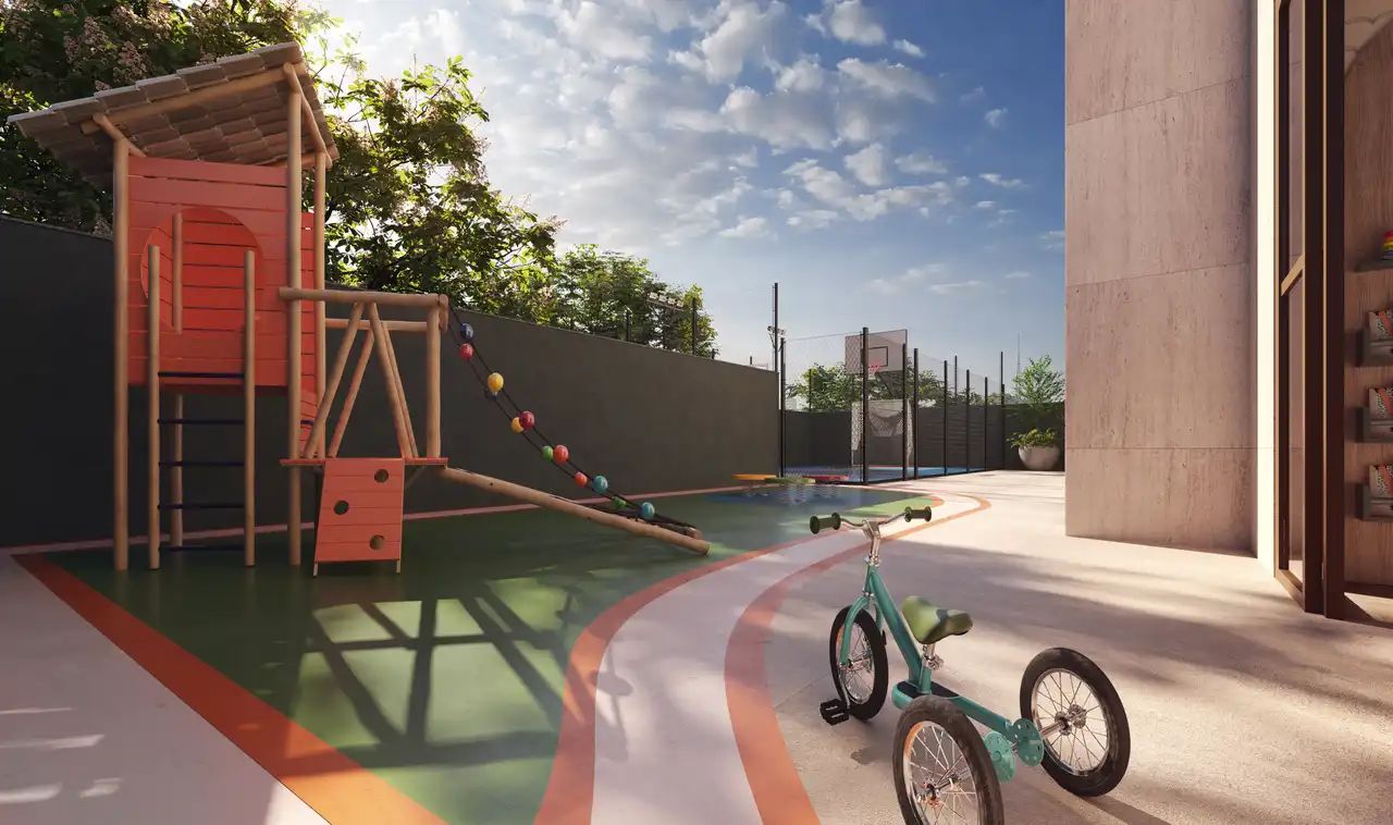 Lazer completo com academia, espaço fitness, kids e playground, home office, sauna, quadra poliesportiva, piscina, espaço de massagem e espaço gourmet.